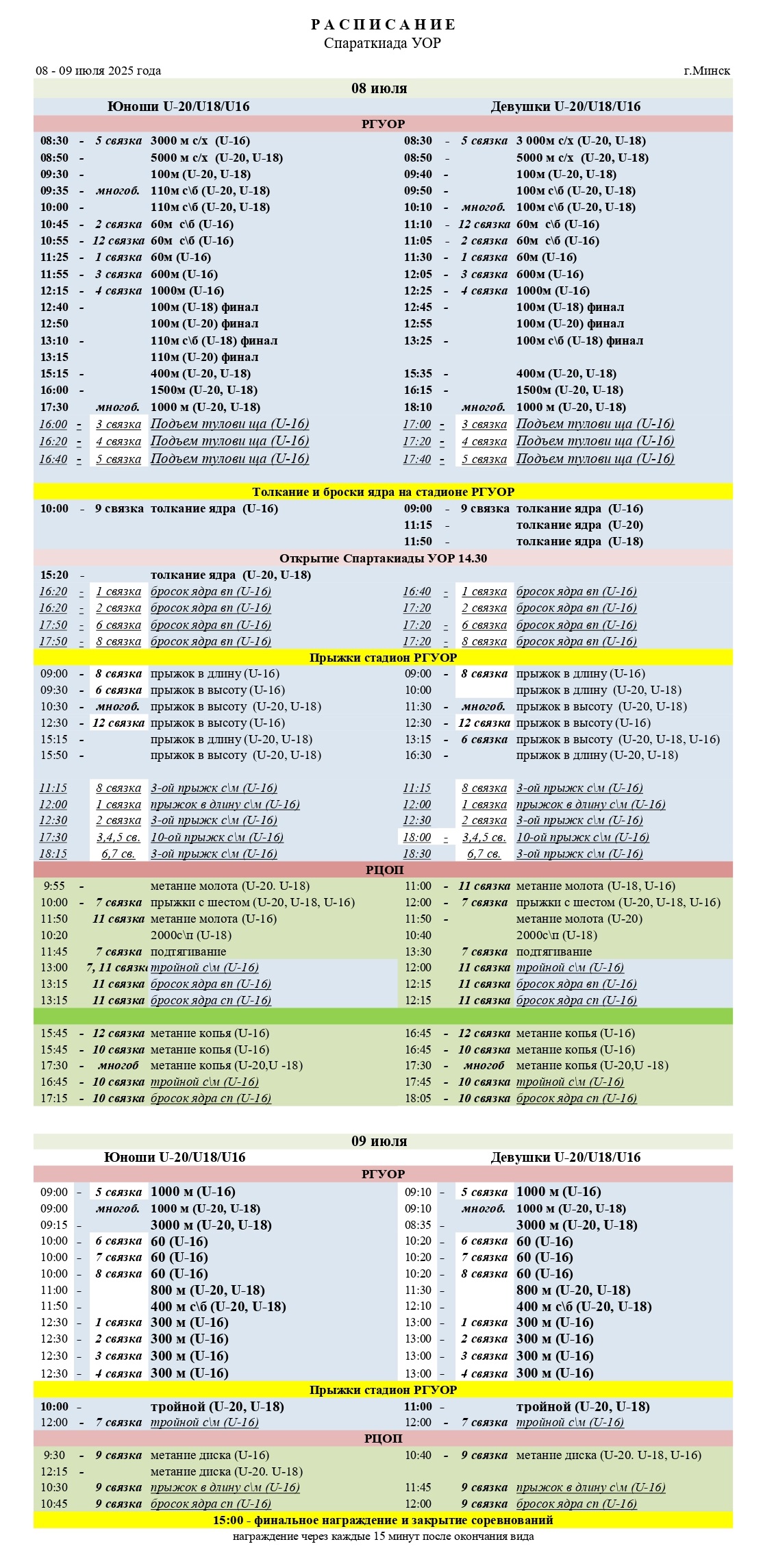 08-09 июля 2025 года в Минске пройдет открытые республиканские соревнования среди училищ олимпийского резерва памяти А.В.Власюка (Спартакиада УОР)