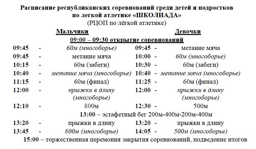 04 декабря 2025 года в Минске на базе учреждения «Республиканский центр олимпийской подготовки по легкой атлетике» пройдет IV этап республиканского спортивно-массового мероприятия среди детей и подростков по легкой атлетике «Школиада» — финальные соревнования среди сборных команд областей и г.Минска.