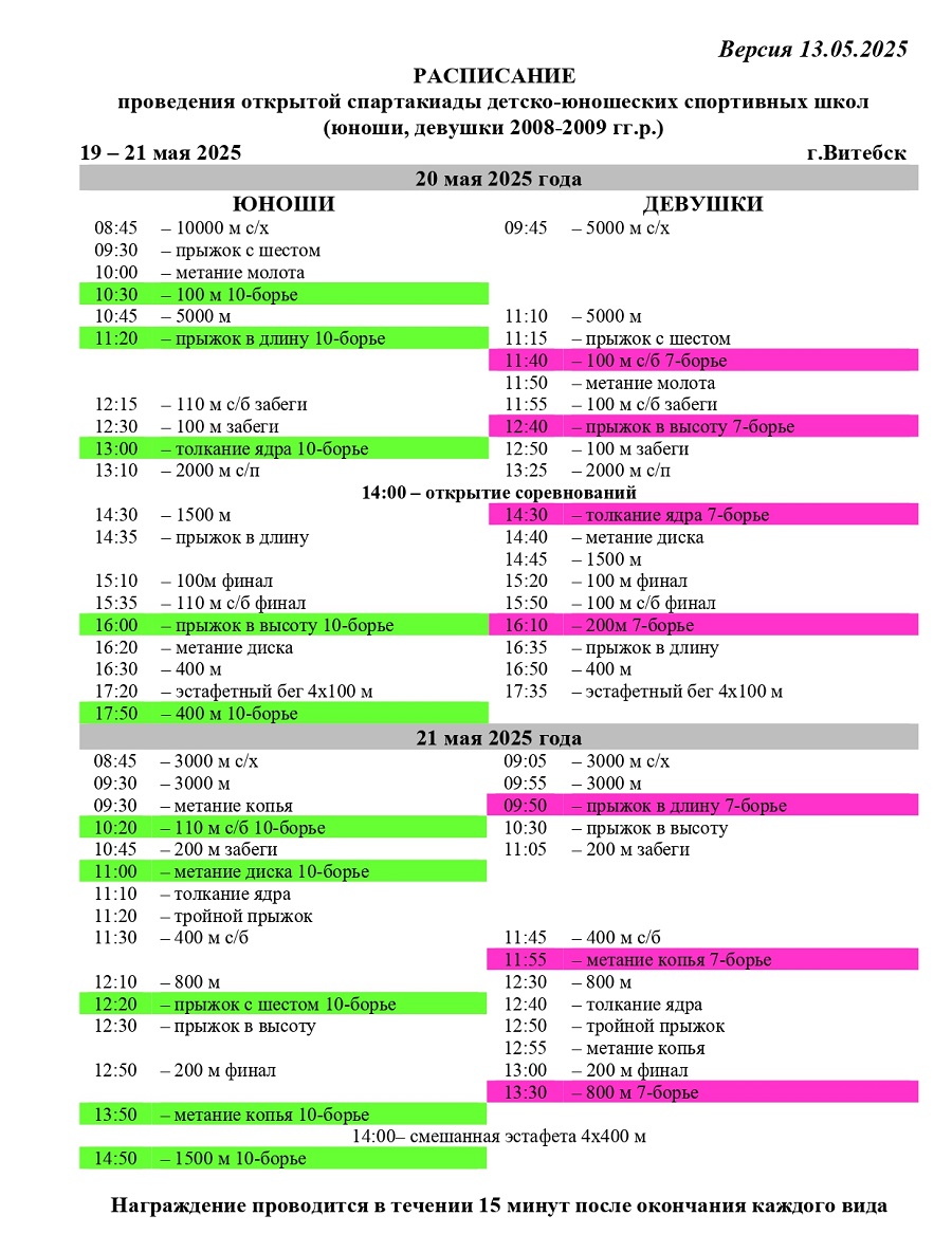 20-21 мая 2025 года в Витебске пройдет открытая спартакиада детско-юношеских спортивных школ среди юношей и девушек 2008-2009 гг.р. Соревнования проводятся на стадионе ВЦСК «ФК «Витебск».